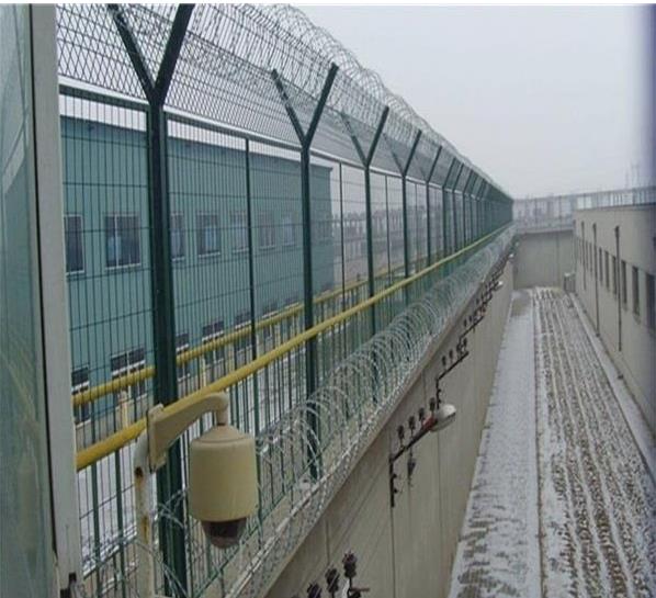 监狱焊接刀刺片围网 焊接刀刺隔离网 焊接刀片隔离栅, 艾瑞监狱钢网墙主要是采用高强度的刀片刺网与普通防护网的结合,由V型支架立拄,加强型焊接片网,安全防盗连接件和刀片刺网组成.刀片刺网是一种新型防护网,由锐利尖角镀锌钢板或不锈钢薄板做刀片,钢丝做芯线组合而成的.